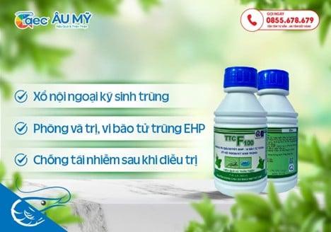 Với thành phần có chứa Polyphenol, TTC F100 có khả năng ngăn ngừa, xử lý ký sinh trùng EHP, gây ức chế khiến EHP không thể lây lan, không thể bám trên thân hay ký sinh trên đường ruột và gan tụy của tôm.